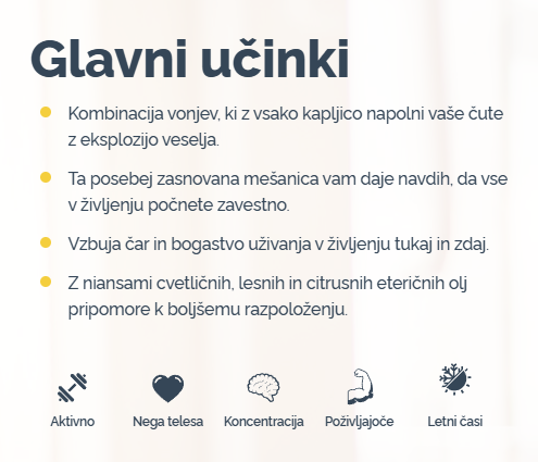 • Nanašaj na pulzne točke (kjer zaznaš srčni utrip) in vse svoje čute podpri z živahno močjo vonja.